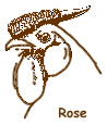 The Rose is a solid, broad and nearly flat comb on top. It is a low, fleshly comb that concludes in a well-developed tapering spike at the back. It may turn upward as in Hamburg breeds, be nearly horizontal as in Rose Comb Leghorn breeds, or follow the contour of the head as in Wyandotte breeds. The top surface of the main part should be slightly convex and studded with small rounded protuberances. The general shape varies in the different breeds. |