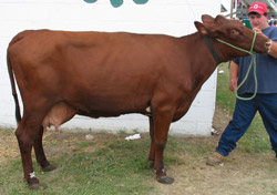 MILKING SHORTHORN - this breed was developed from an English breed of cattle. Their breed association was formed in 1972. Intermediate in size and milk production, this breed is an efficient converter of feed into meat or milk, and has a high heat tolerance. These animals can be red, white, or roan in color.