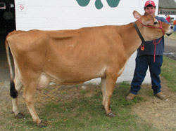JERSEY - they were developed on an island in the English Channel. They are the smallest cows in size, and produce milk that is the highest in fat and protein. A shade of fawn with or without white markings characterizes this breed.