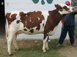 AYRSHIRE - developed in 1750 in the county of Ayr, Scotland, this breed is medium in size with average milk production. They are characterized by strongly-attached, well-shaped udders and are known for their extreme hardiness and good foraging ability. These cows may be red or mahogany and white.